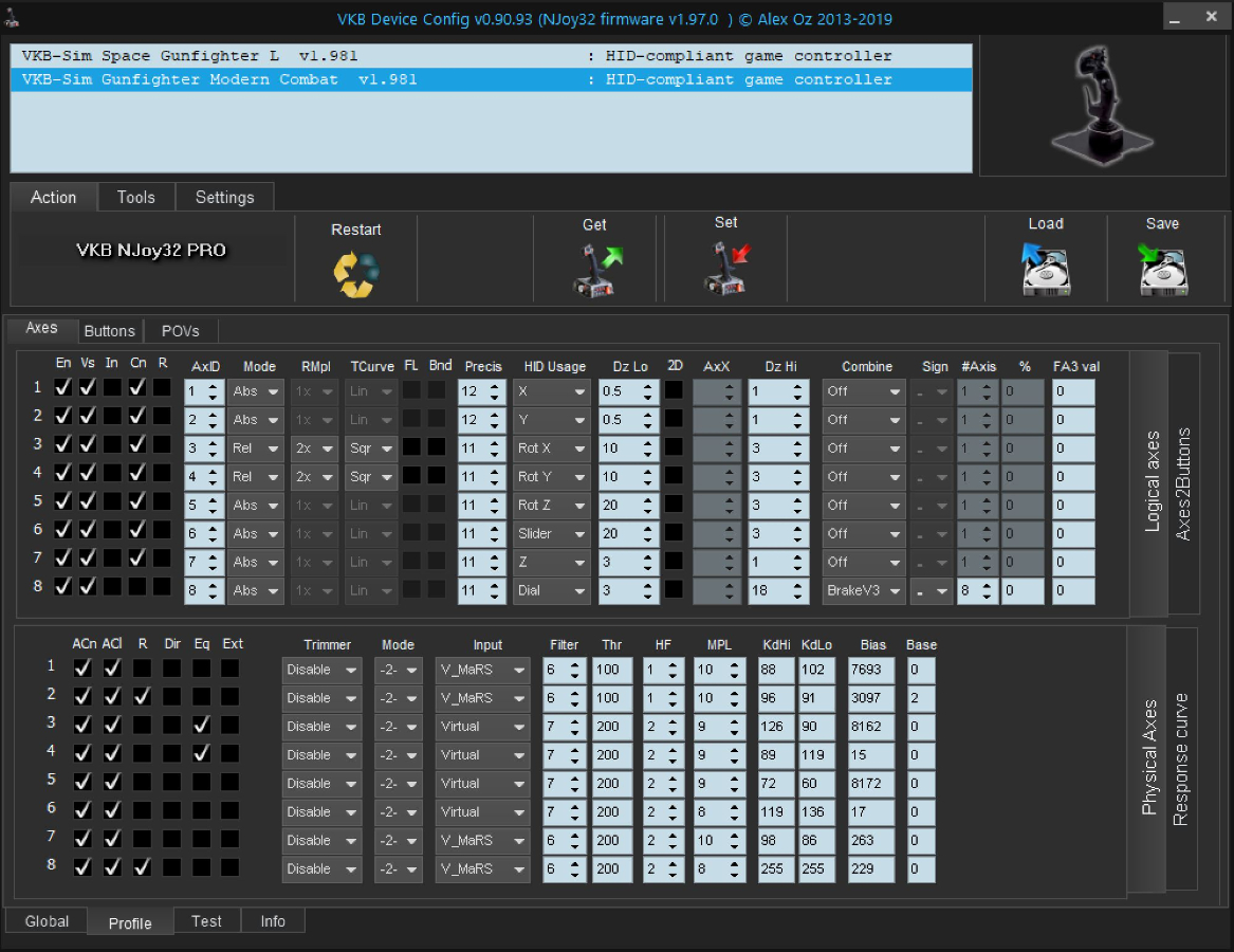 I would really love wizzo to support dual sticks. Im using 2 gladiators in elite dangerous and the only way to configure them with wizzo is to unplug one and configure them one at a time. Even the joytester doesnt seem to like having 2 of the same stick plugged in as it shows the readings from only ...