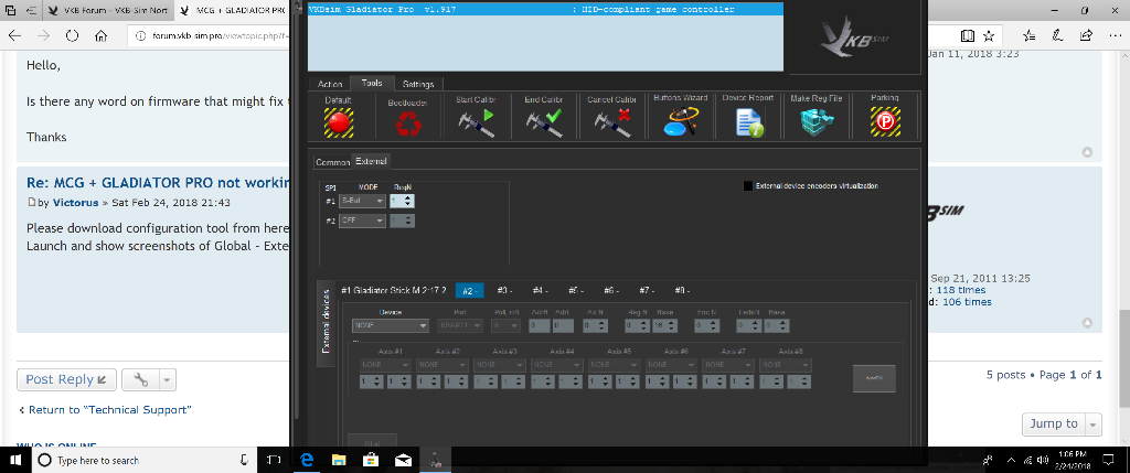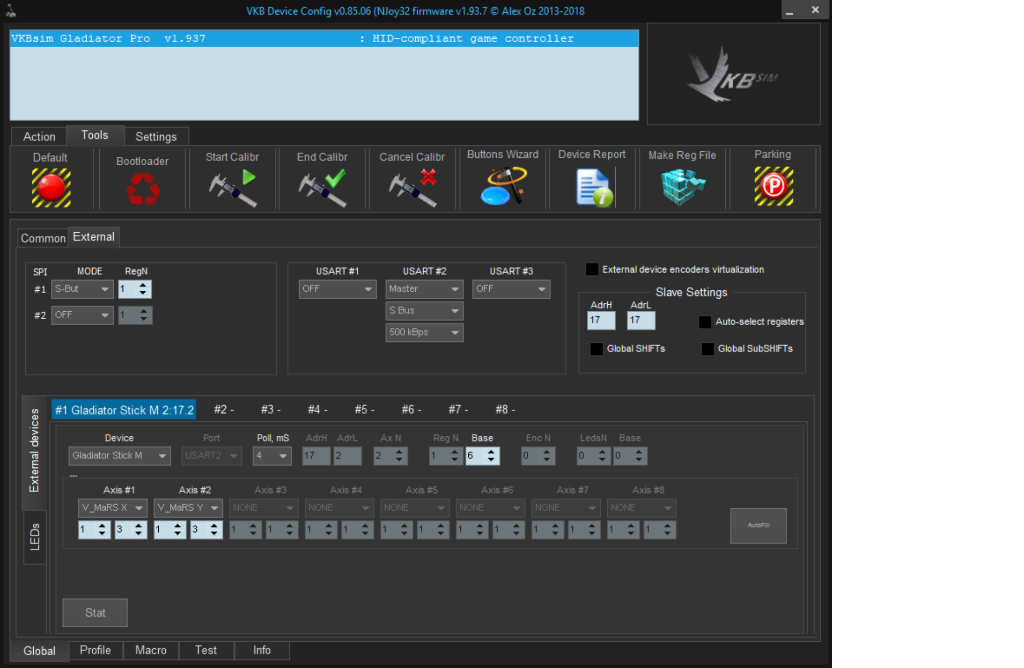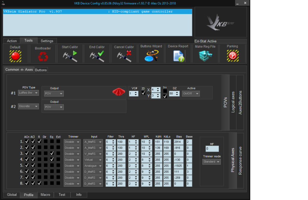Hi The profile I downloaded shows all 8 axes enabled but in the test section rot x and rot z aren't activated by any controls. The brake lever and up/down movement of the top mini stick on the MCG aren't recognized. The throttle axis on Gladiator Pro base only moves between the far left and the cent...