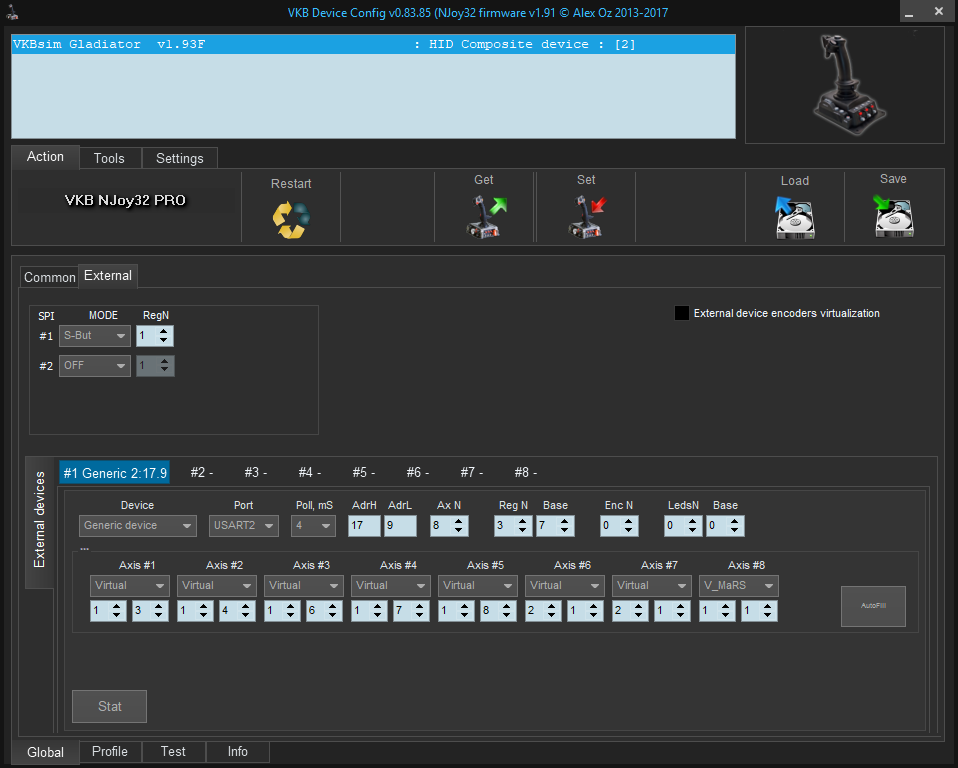 Доброго времени суток. Вчера ночью установил новую прошивку Gladiator_Pro_v1_93_6 - стали видны обе хатки во вкладке Test а также настройки MCG-триггера, правда хатки работают криво - видно дрожание, рычаг тормоза все еще не работает. Похоже дело было в прошивке - отдельное спасибо Юрию за ссылку. П...