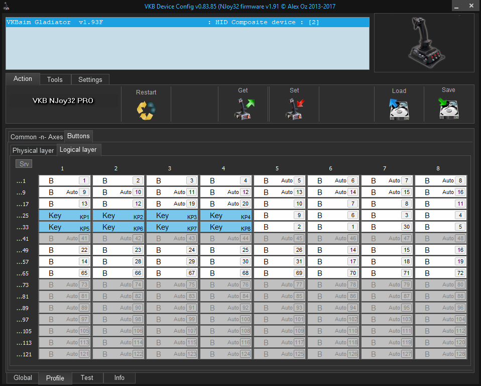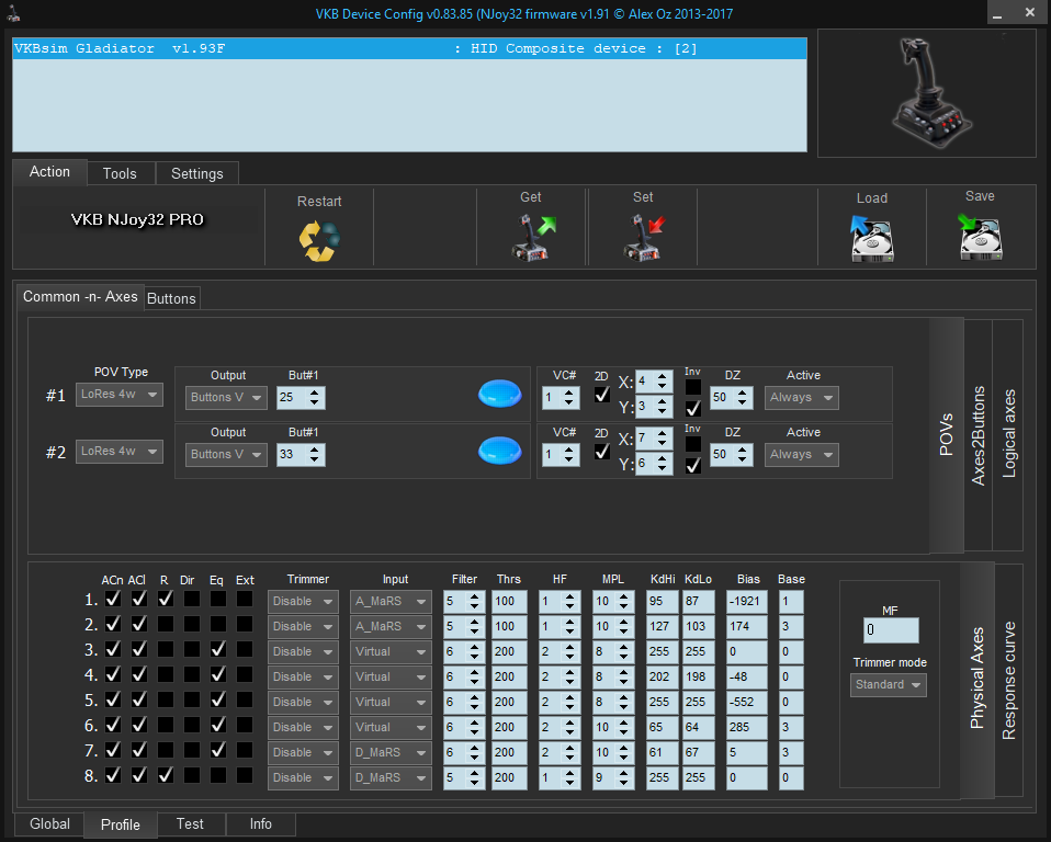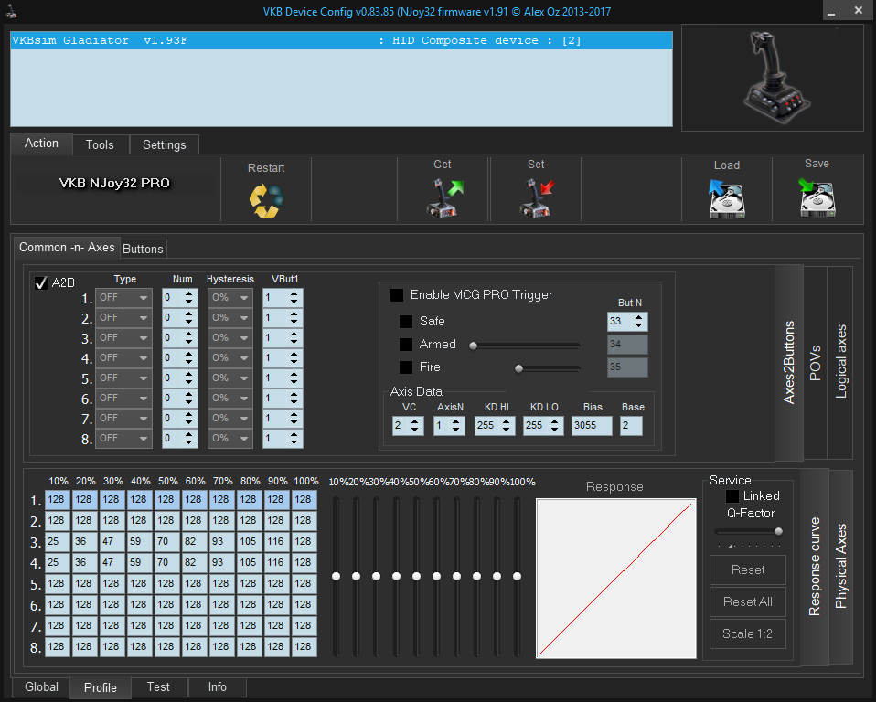 Добрый вечер. в результате всех действий получился вот такой профиль. Gl_MCG_DAP_nohuts.zip Работает все, но есть проблема: При тестировании во вкладке "Test" центральная кнопка левого министика (чашечки) MCG и кнопка В2 на основании Gladiator Pro задвоены. То же самое кнопка триггера MCG ...