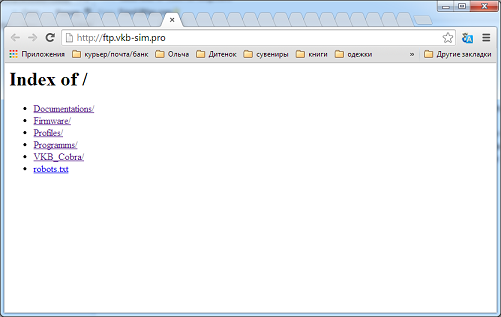 Все программы и документация находятся на FTP доступном через веб интерфейс http://ftp.vkb-sim.pro/