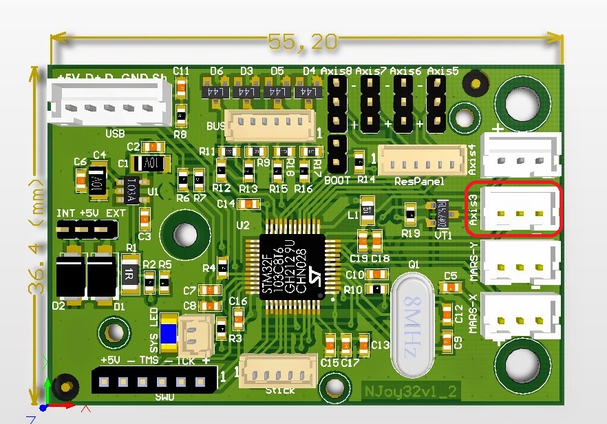 Я пробовал соединять провода из ручки непосредственно с празъемом Axis#3. Все работает. Чисто электрически. Органы управления ручки нормально отрабатывают. Однако, чтобы заработал джойстик (собственно, механика), необходимо доработать шток механики. То есть вместо 5 пинового штекера 3 контактных пластины.