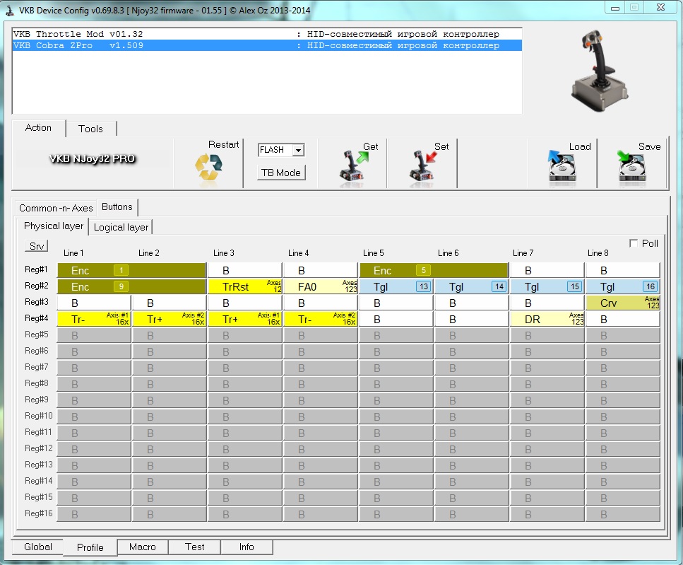Для настройки контроллеров РУД и джойстика используется стандартный кон#