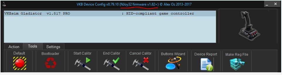 When I use VKBDevCfg-C v0.78.99 and FIrmware v1.817 everything is fine in the config, but 'some' buttons don't register in game.