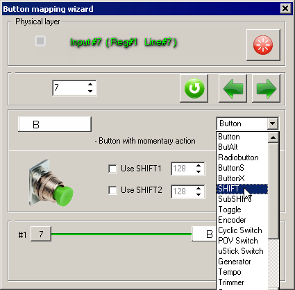 Check Poll and press joystick button, you want to be Shift. You will see red dot in its cell. Click this cell. Button mapping wizard dialog appears.