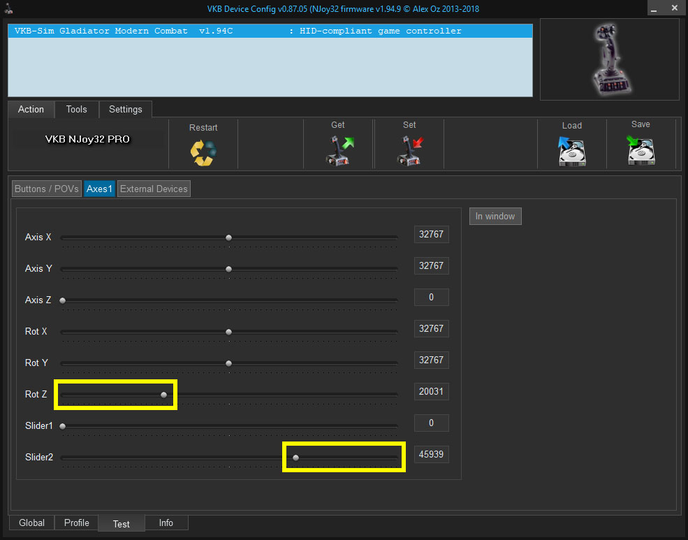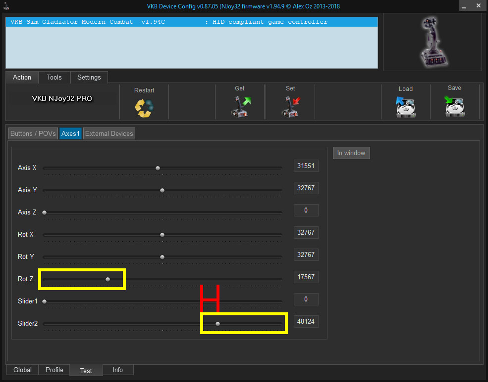 - Setting the deadzone to 10 low and 15 high for both axis 7/8