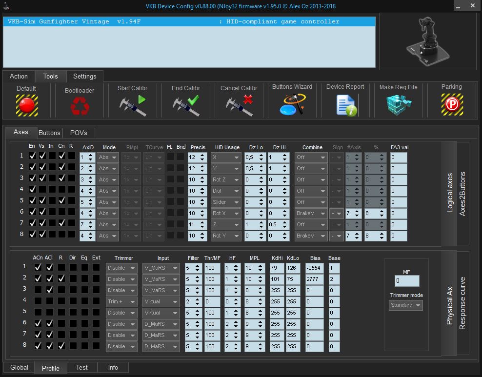Thanks very much. I have just successfully flashed the right firmware for KG12. I also downloaded the newest VKBDevCfg v.88 and again calibrated the stick.