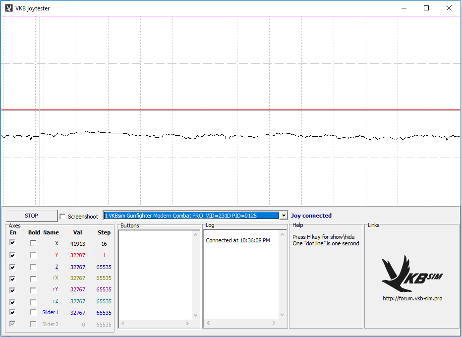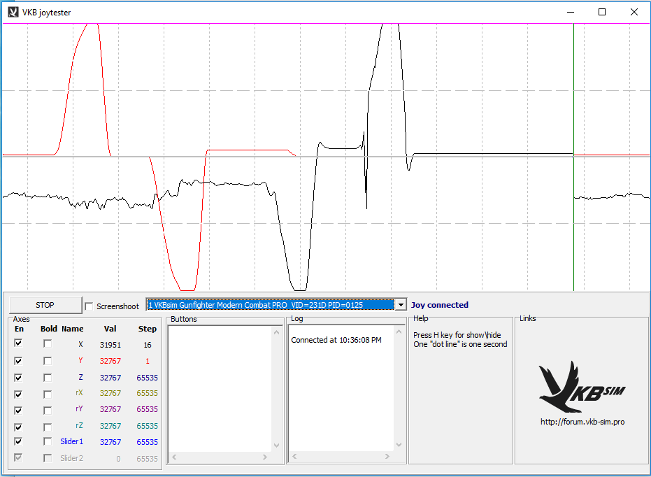 I just tried the joytester software, i took some screenshots, dont know how to interpret them by the way.