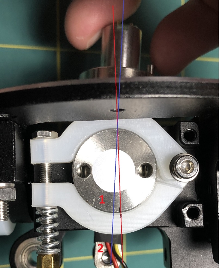 I disassembled the base a little further to get to the sensor section, marked the metal and plastic clutch (which is not tight enough to generate this).