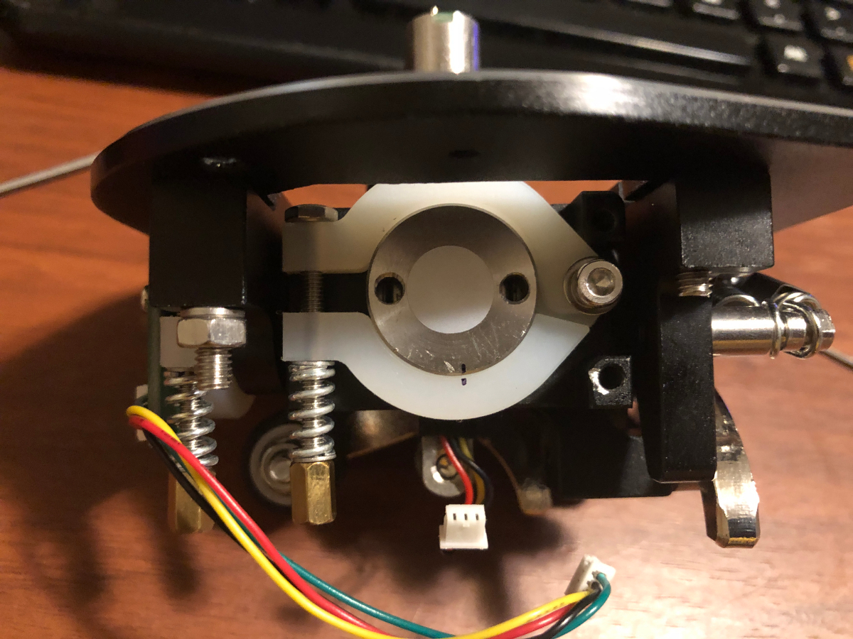 Playing around with this with two hands, in this disassembled state without the springs or cam (?) in place, there is considerable play in the Y Axis and a small amount of play in the X Axis.