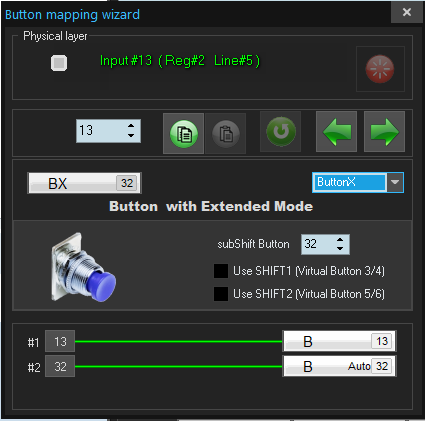 Does the shift work by pressing and releasing the shift button and it steps through the different shift modes? In your example when your press button 13 does it output button 13 when in shift 1 more and button 32 I shift 2 mode ?