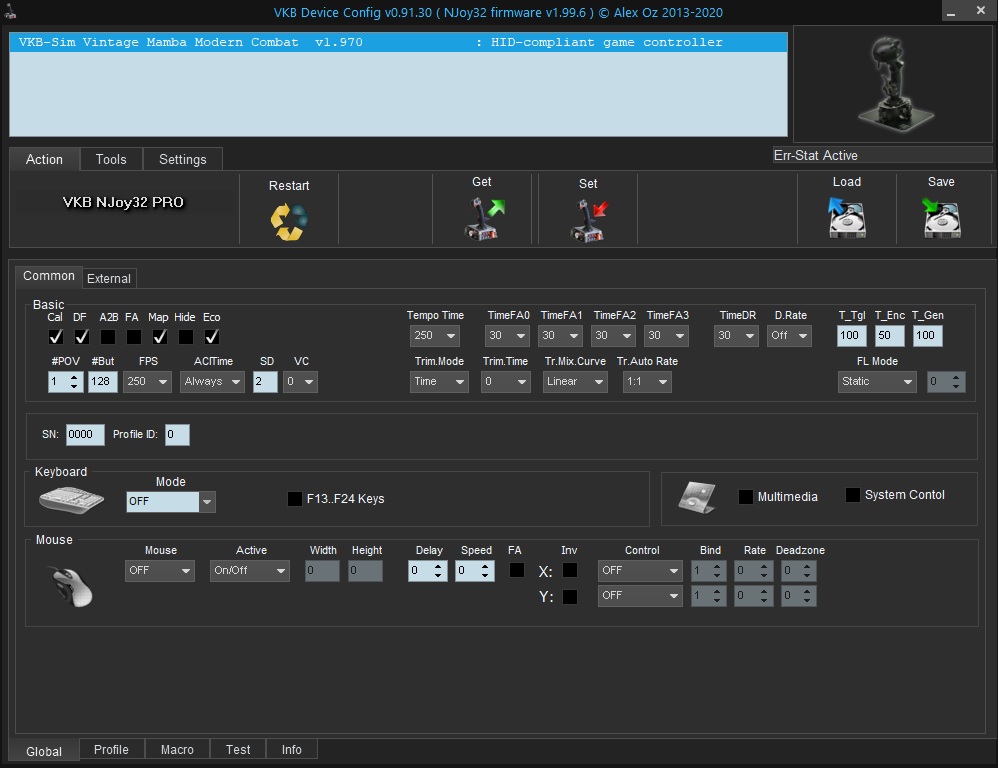 Neither in the Windows applet "Gaming Devices" nor in Wizzo you will see a button above the 32nd. Use the configurator or JoyTester to view all 128 buttons. It must be remembered that not every game is able to see so many buttons. For example, IL-2 sees 64, StarCitizen - 50, DCS, X-Plane - 128. I somehow did not think about it in FS2020, I need to check it.