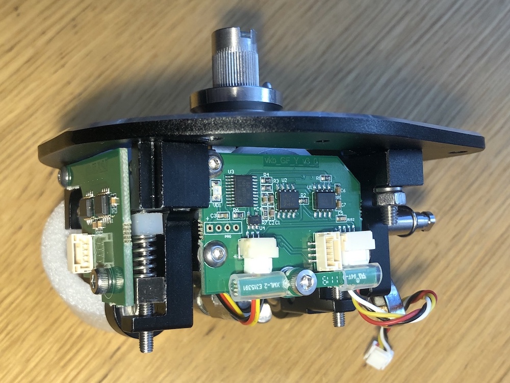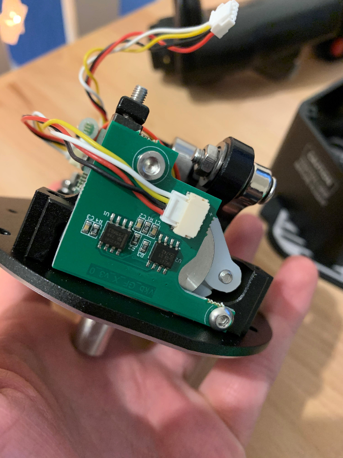 Since it seems that this problem is solved in that the right stick is now consistently being seen, I opened the base anyway and checked for cable issues. All cables and their jackets are intact with no damage, and they are firmly seated. The PCB's also so no sign of damage, tin whiskers or debris.