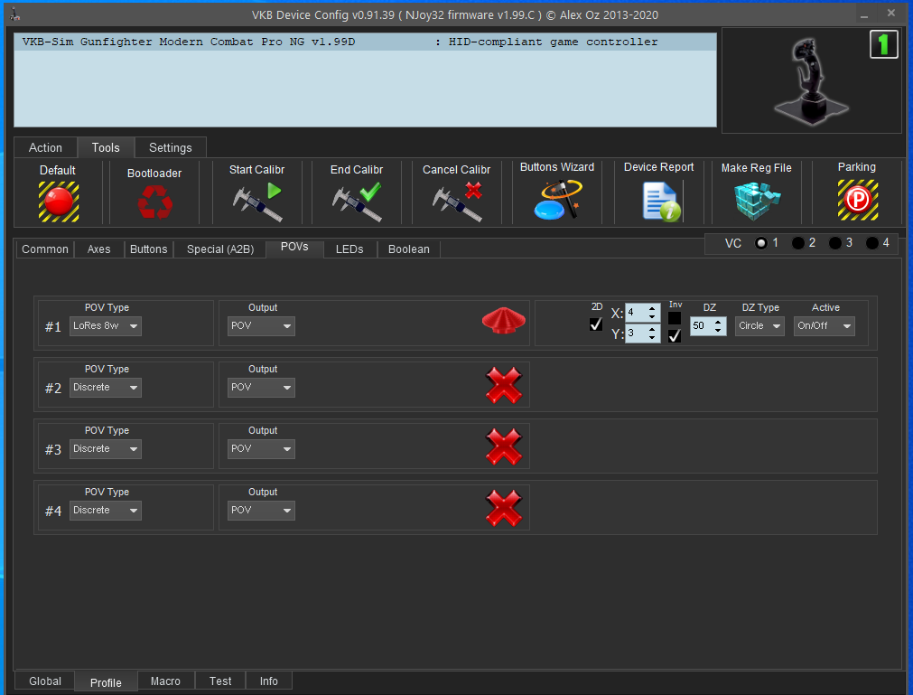 Go to Settings and activate the check box, as in the picture. When calling the calibration, select only 3,4,5,6 axes, Set, move the micro-sticks, End. We show the screenshot.