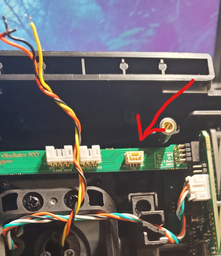 Tested power on the stuck, and it gets the 3.3v being sent from the base. Continuity on the tx2 wire (yellow) also ok, both on the wire and on the board (metal/silver prongs next to the female end of the connector).