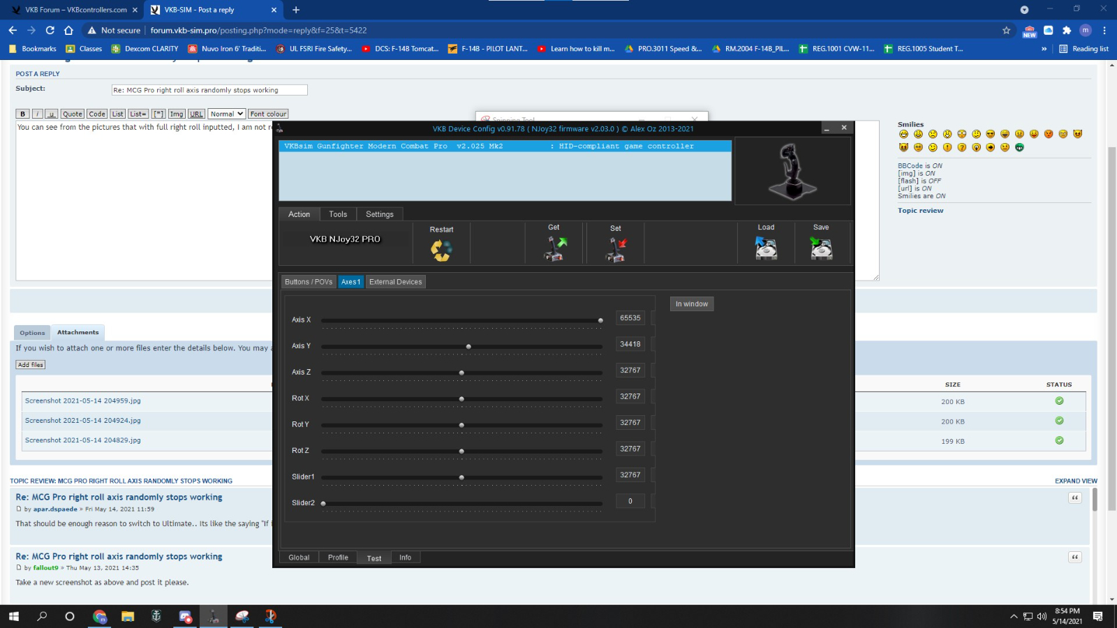 Re: MCG Pro right roll axis randomly stops working