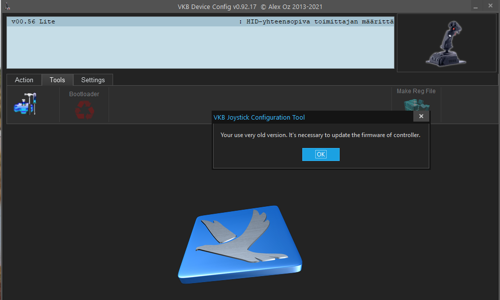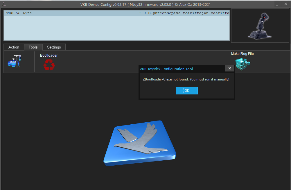 6. Run VKBDevCfg as Admin and press the Bootloader button under Tools tab;