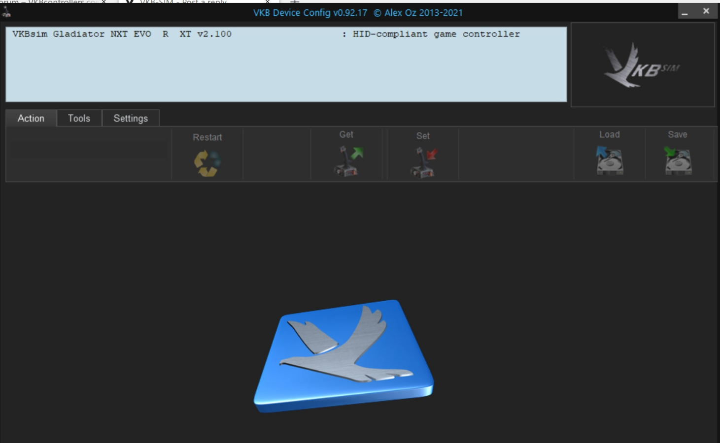 I understood the instructions. In particular, that I can't use Bootloader since you do not have Firmware 2.1000 on the website that VKB EVO came with. You only have 2.09 for download. I can't get to Step 8 since Global/Devices is not loading. The Configurator does not load the joystick parameters. Here is a screenshot. I tried booting up with F1,F2 pressed as well as F1,F2,F3.