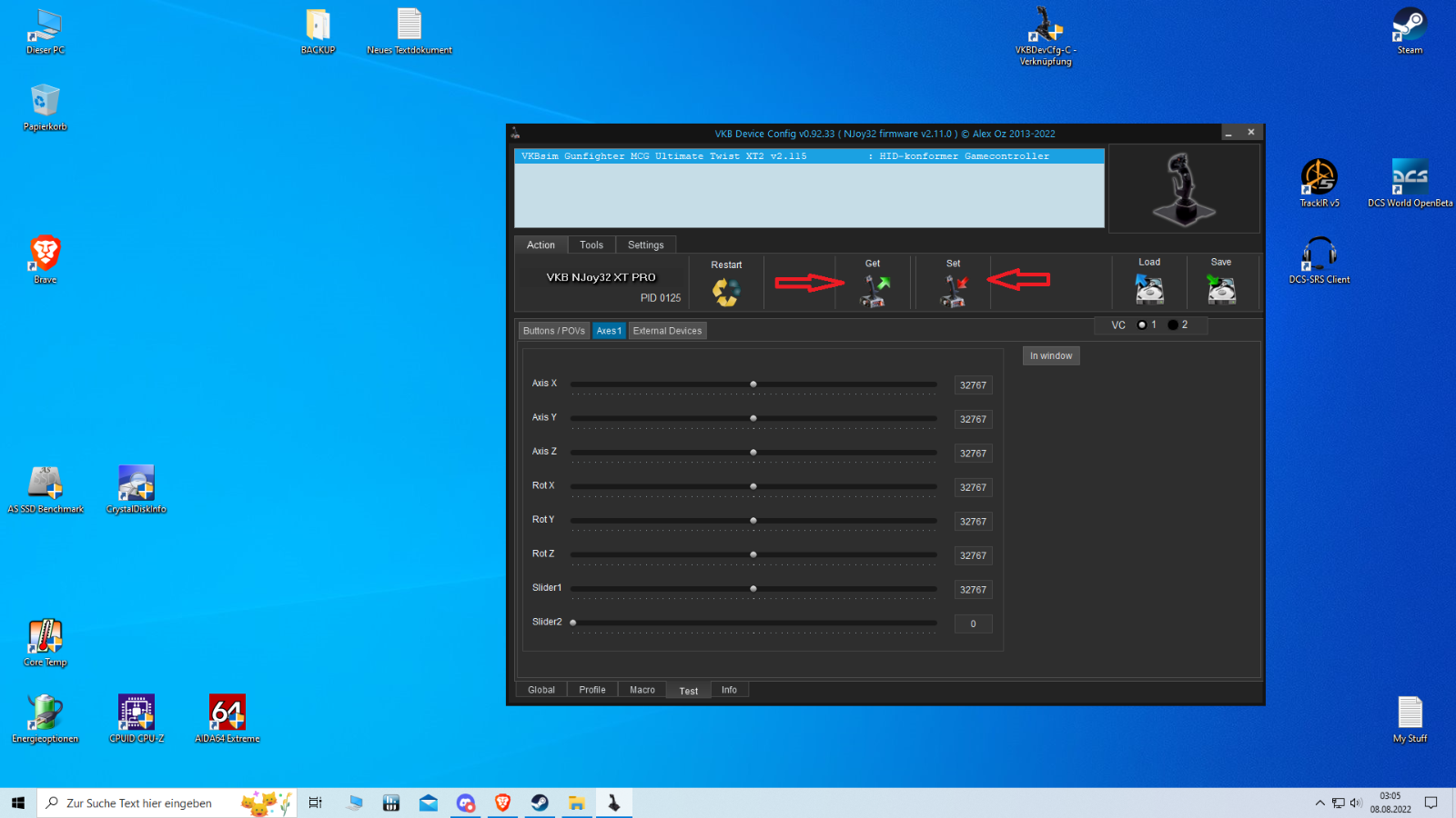 Does the "Set" Button safe the calibration into the Joystick?