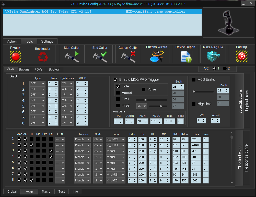 Post a VKBDevCfg screenshot please showing the Profile/Axes/Logical and Physical Axes charts.