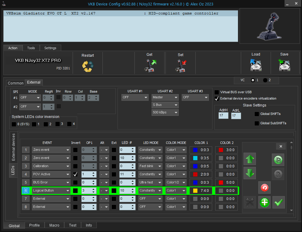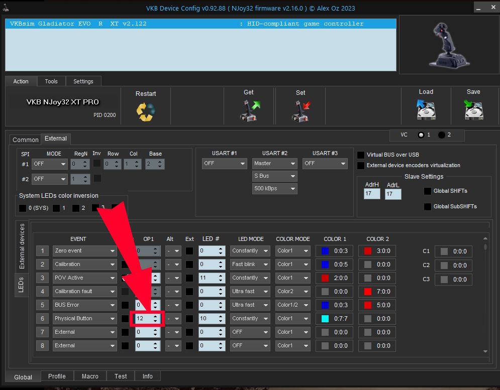 If it is Physical or Virtual you need the Cell ID (bold # when hovering the desired button) in order to trigger an LED event.