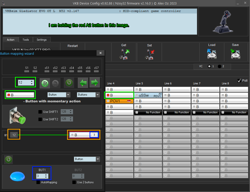 When you hover a Logical button cell it will open a little popup that shows the Virtual Cell ID in bold and the Logical joystick button # that is sent to windows on the right of the popup window.