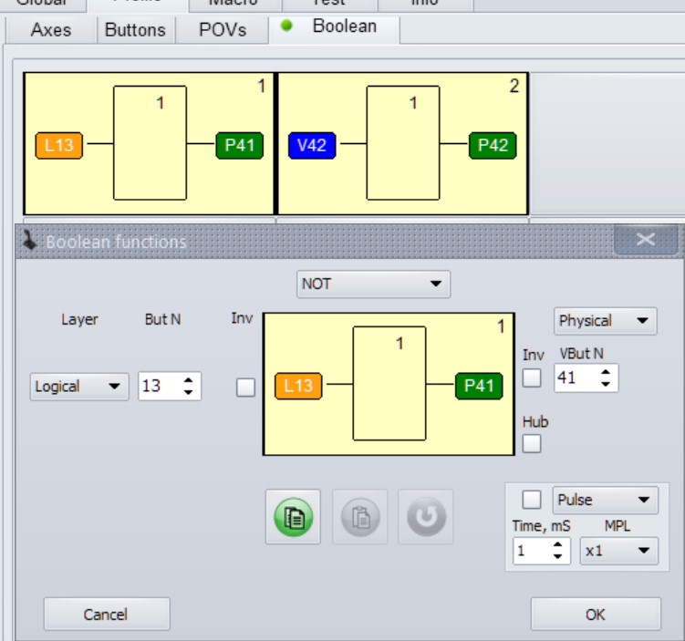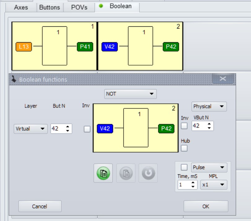 2. Using a jumper in the Boolean, we bring both buttons to the physical level for further assignment of the FA0 and TrRst functions to them.