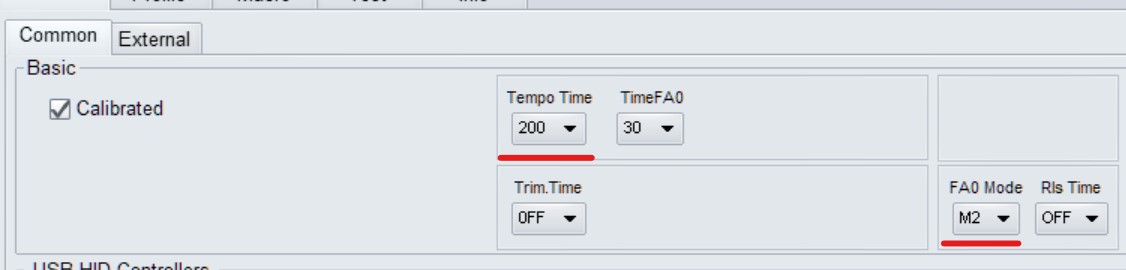 The duration of the transition from short to long is adjusted here. Also on this tab you can select the FA0 M2 mode, which is much more convenient than M1, in that there is no jump when activating this function.