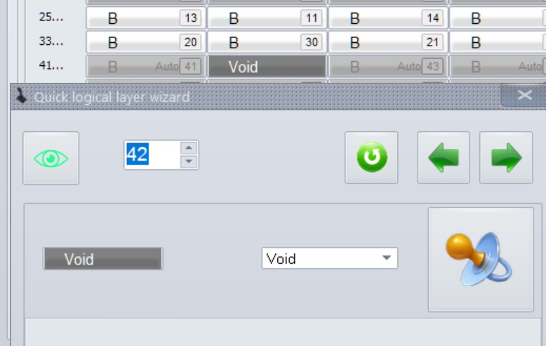 To do this, you need to disable button 25 at the physical level, put a Viod for button 42 at the logical level and change L13 to V25 in the Boolean.