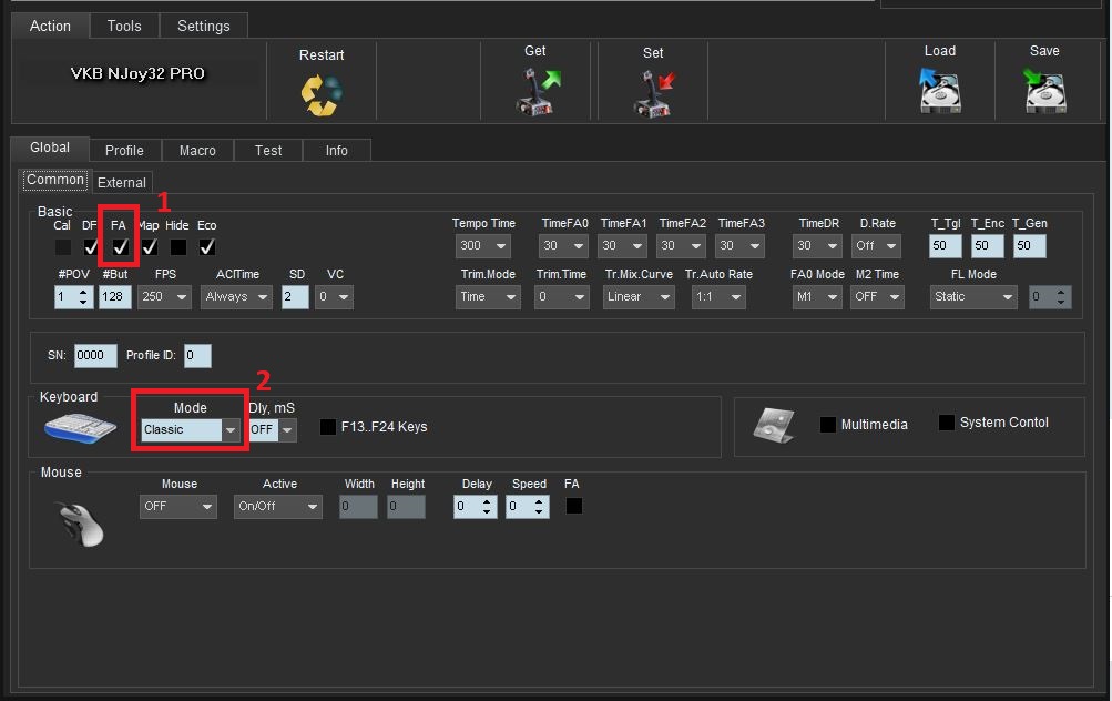 1. In Global/Common check the FA box, then activate keyboard (1,2 in pic1);