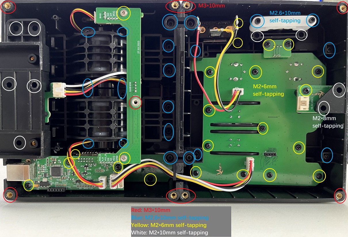 The screws with white circle in your picture are all M2*8 self-tapping. For Rubberized Grip Pads are M2*6mm only, DO NOT USE M2*8mm.