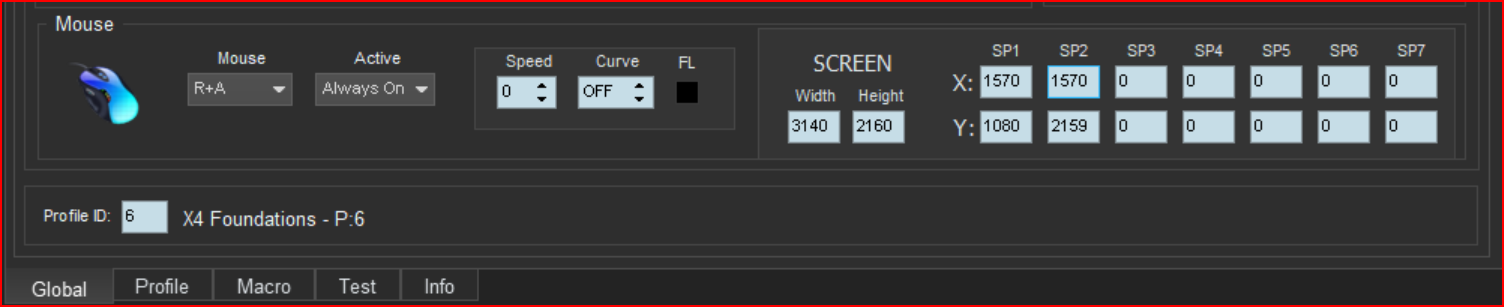 - 1. Global Panel, Mouse R+A Always on and the Screen coordinates are set correctly for my setup