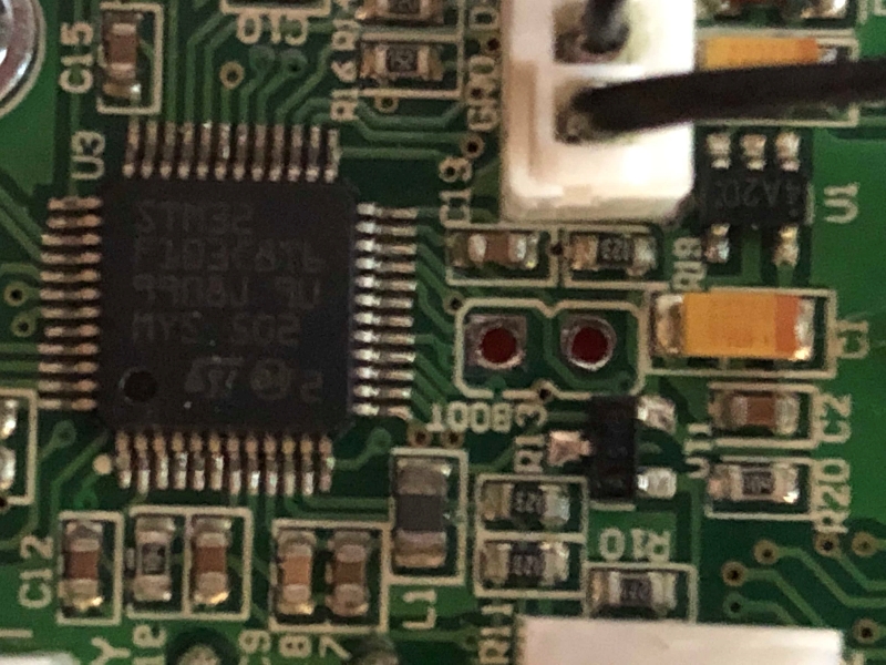 Just connect those 2 ‘holes’ together. Those are the so called pins. On Alex’s page, bootloader section, is showing how to short them with some teeezers.