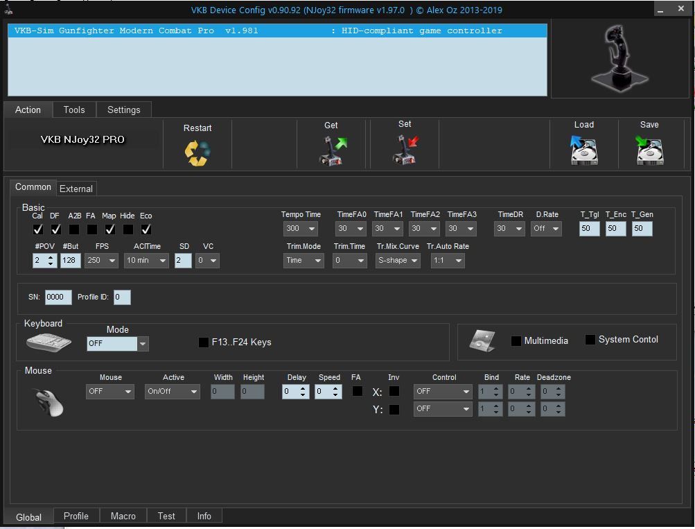 2) Use WIZZO GF Edition (http://ftp.vkb-sim.pro/Programms/wizzo_gf_0_98.zip) or VKBDevCfg w/ MCG supprt (http://ftp.vkb-sim.pro/Programms/VKB..._v0_83_8_5.zip) for calibration.