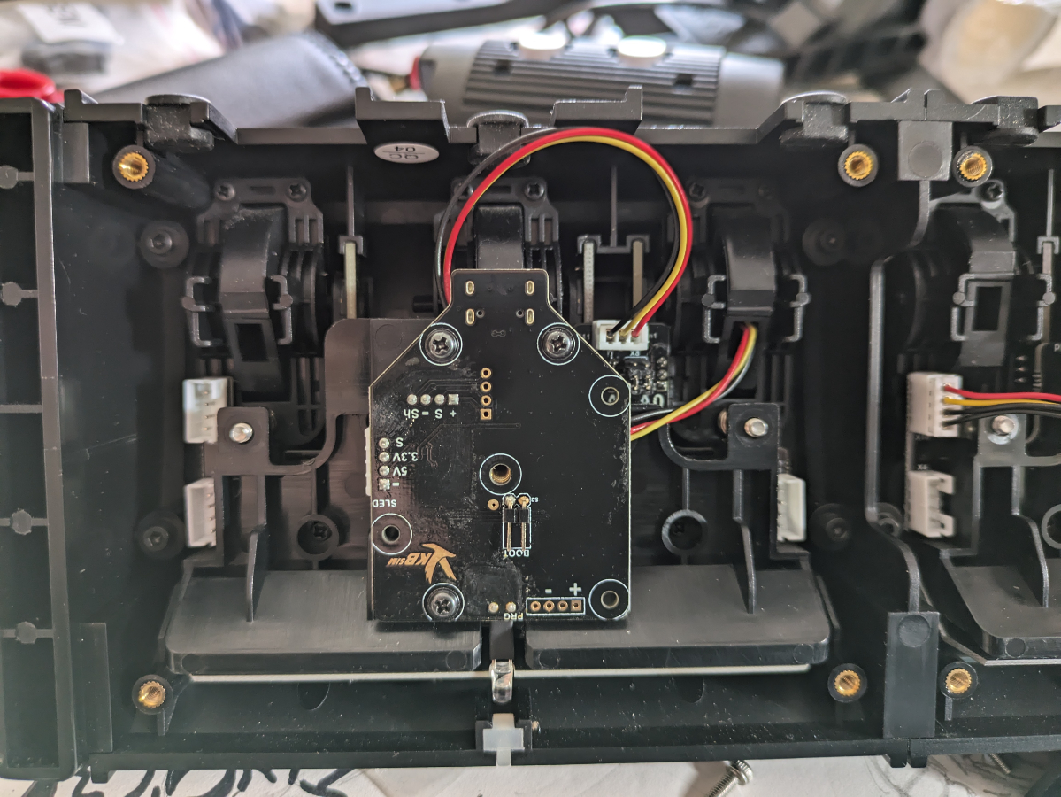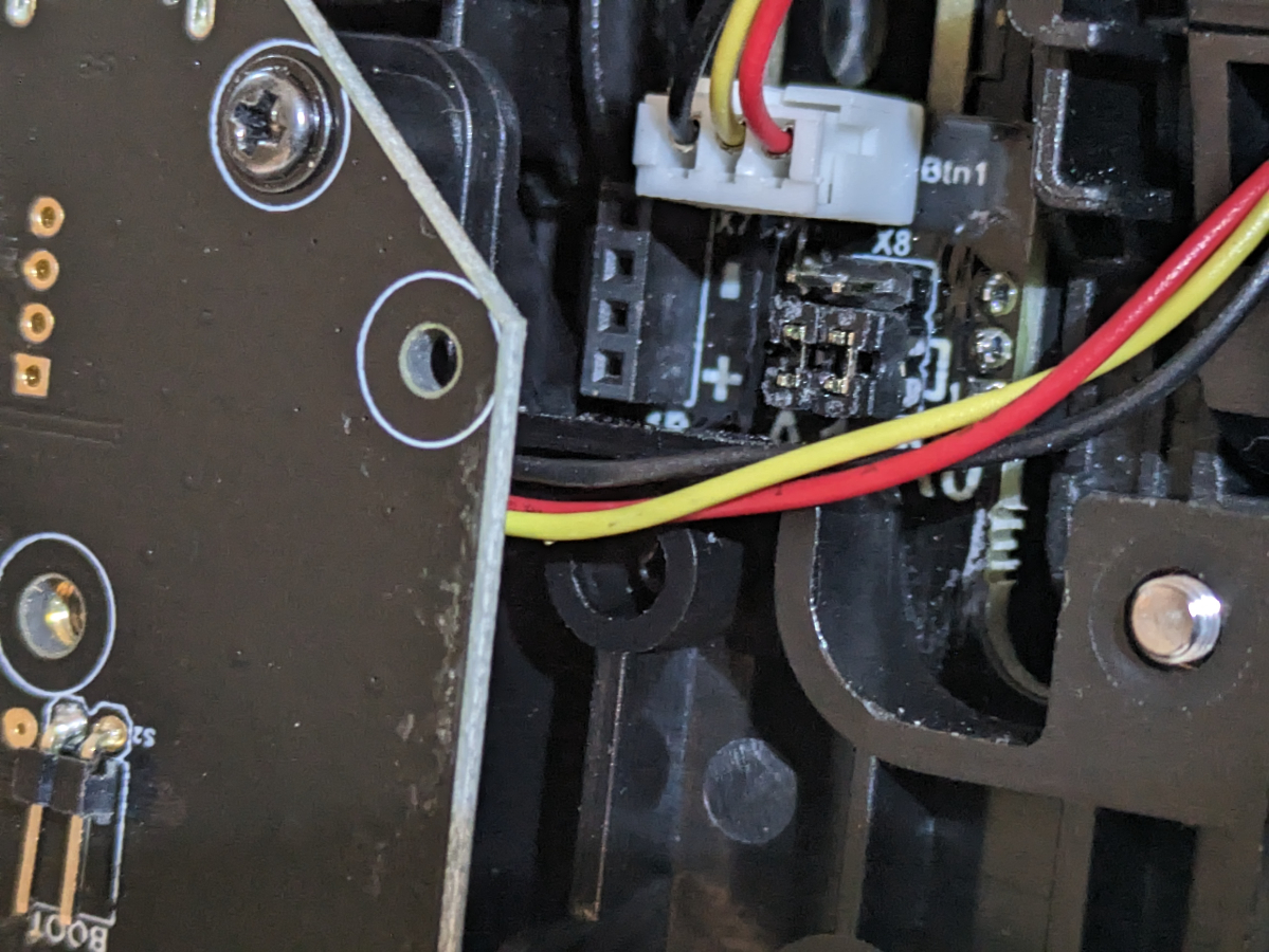 Some newer GNX-HID boards have a capacitor (dark can-shaped component) fitted between the + and - pins of the PRG header. That part would be found on the side that is currently facing inside the module, but judging from the pads it does not look like your GNX-HID board has one.
