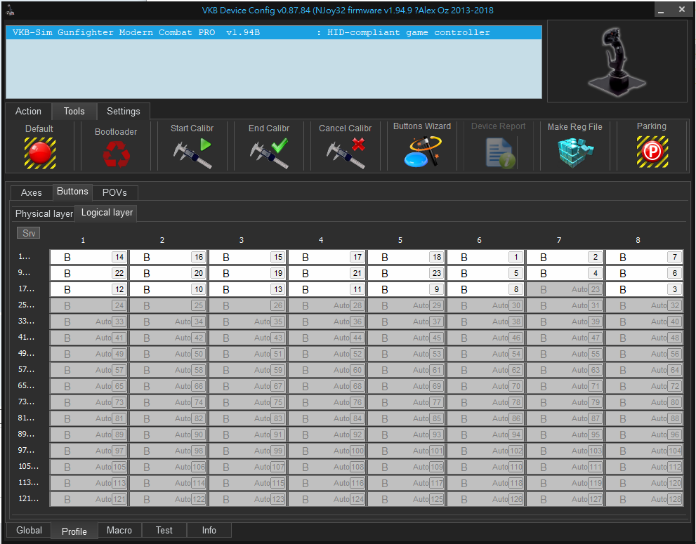 One interesting finding is that I am quiet sure last time I tried with the stick extension removed (a few post before where I reported the red button triggers #14 button), all my buttons has responds and the error level is mostly 0%.