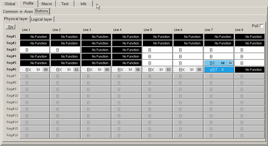 Check Poll and try to push buttons. You will see button number flashing. If No Function is chosen for this button, it will not be recognized. Click this cell and choose Button from combobox in Button Mapping Wizard. Then click Set.
