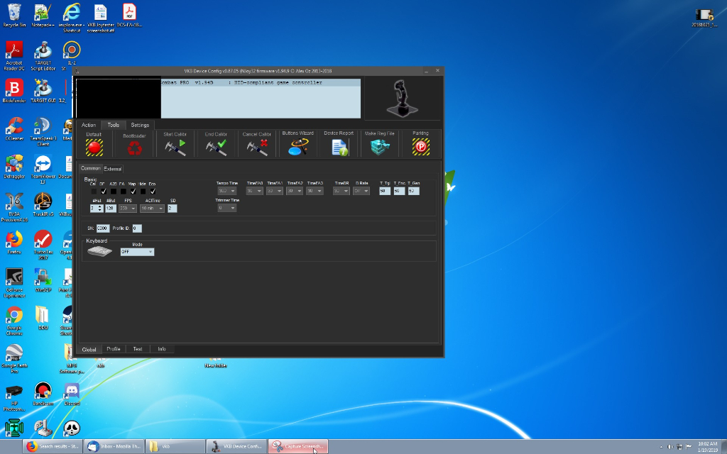 That said, you never posted which firmware and which version of vkbdevconfig you're using. It'd be great if you could post a screen shot of your vkbdevconfig global and profile tabs so we can see. You can post the screen shot directly here. Don't use a 3rd party link. Just add it to your post. Up top there's a button for it says img. Could be an incompatibility between the firmware version and the version of VKBDevconfig you're using. Same with the version of firmware and version of bootloader.