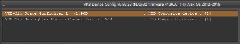 VKB Devcie Config v0.91.26 - Firmware version: v1.994