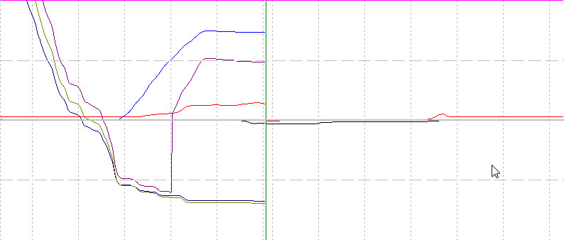 Pull brake lever. 3,4,5 axes move simultaneously. Move pedal. When it gets 40%, corresponding combined axis will begin to fall corresponding with pedal. From current (from lever, axis 3) value to 0 (if you push pedal fully. Release pedal and it will grow back. The same for other side.