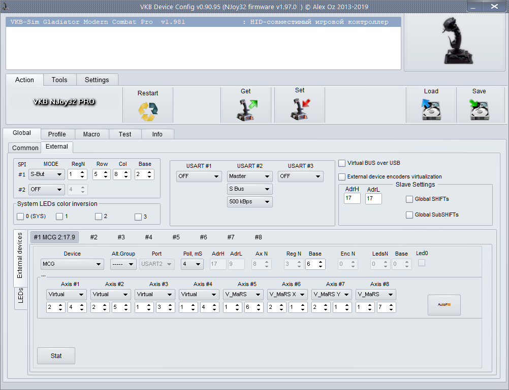 I suggest leaving all these axes in operation, and Master Mode will work only as a HAT. Strange, but it didn’t work for me on the axes 2-2, 2-3 (default) - I had to throw it on 2-4, 2-5.