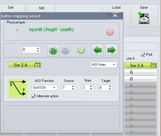 Option with a button. The brake settings remain yours, with the visibility of the 8th axis turned off (Vs - off).