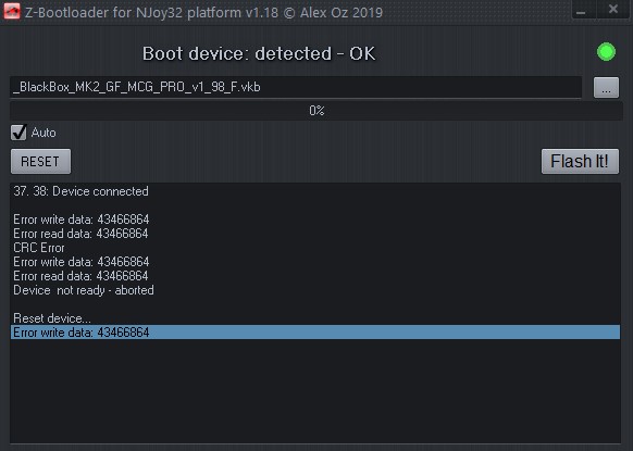 I'm having trouble flashing my GF MCG PRO with the NEW blacbox (black) to the latest 1.98F firmware.