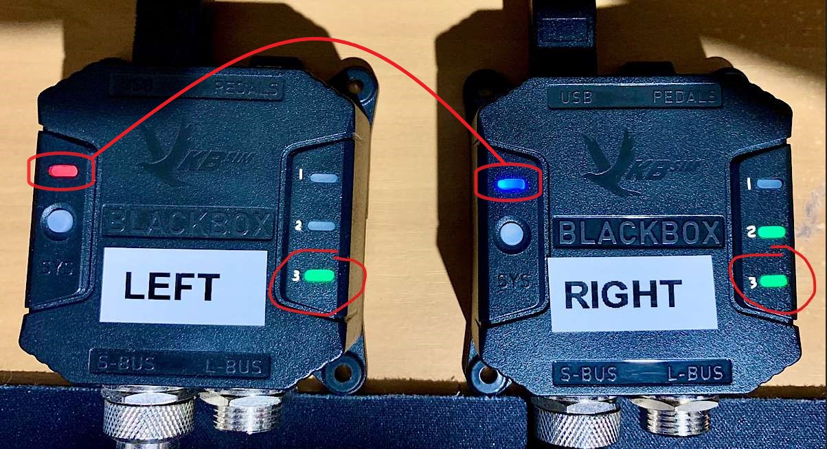 LED #3 on the Blackbox-L and Blackbox-R lights green when A1 is activated, the small red LED on the SCG also lights red.