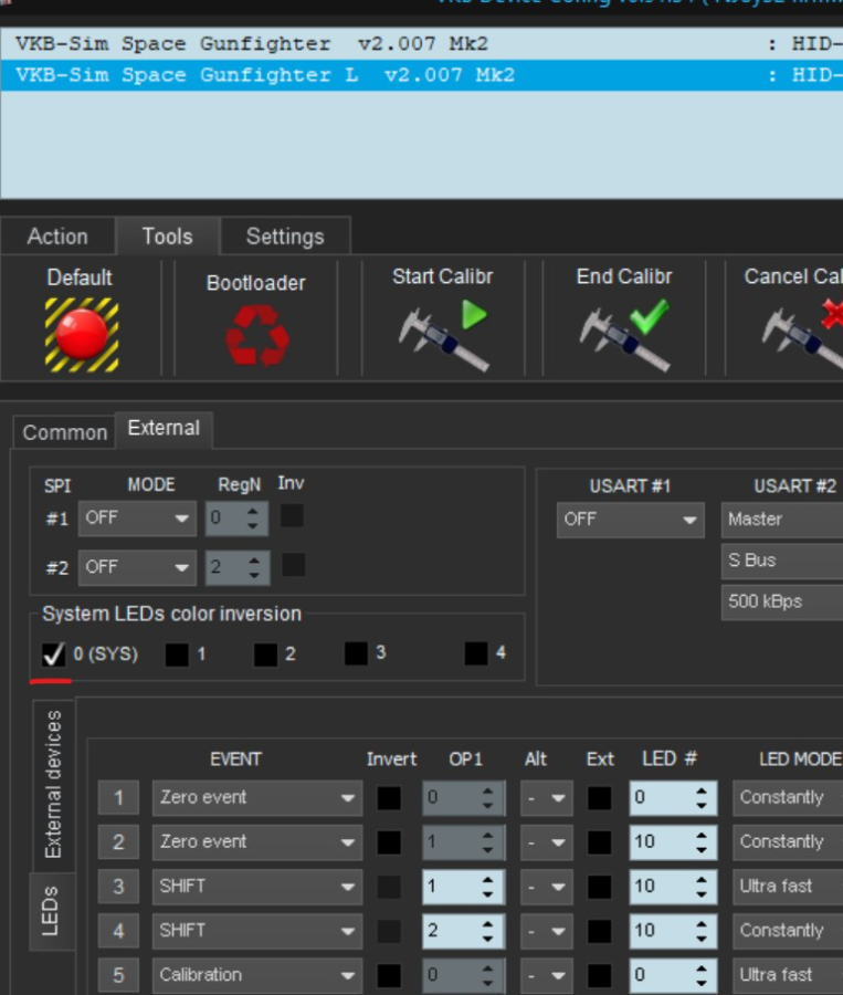 Then you could assign an event as in pic.2 (which could be a button press, an axis in center, a shift mode etc) to an operation number OP1 (specify which axis being in center is getting represented by that specific LED, which button press activates the LED, which shift number is active etc), assign it a LED# (which you identified in previous step), set up the way that LED signals (LED Mode) and indicating its color. Don't forget to press Set at the end to save the changes.