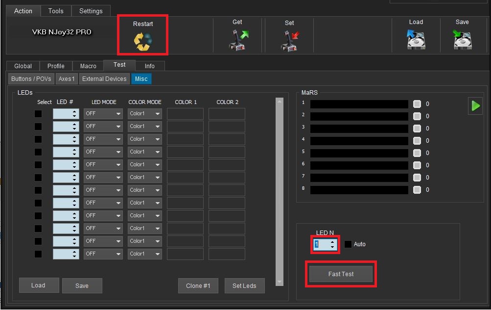 You could find the LEDs numbers by scrolling through numbers (LED N) and clicking the Fast Test button (pic.1). You'll have to restart your device afterwards.