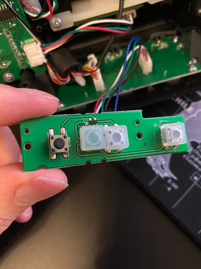 Tried to unplug and plug the cables for electronics but same failure with 3 buttons always shown as activated and not working.
