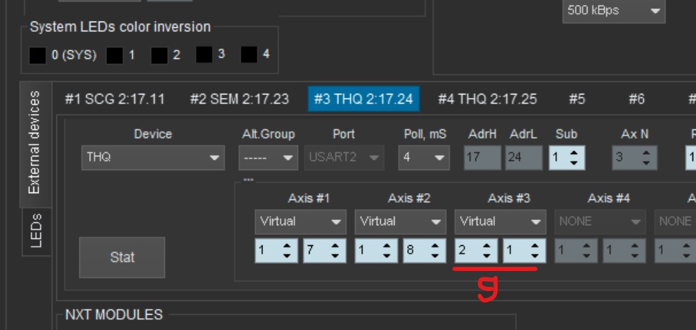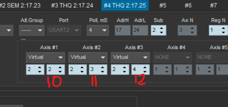 To find the remaining axes, you need to open the remaining devices. This is where they will be visible. And after this you can put En and Vs opposite them and search on VC2.