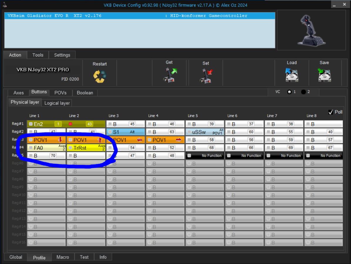 You only need to repeat the described actions on your joystick, having previously saved your configuration (Save button) for quick recovery.
