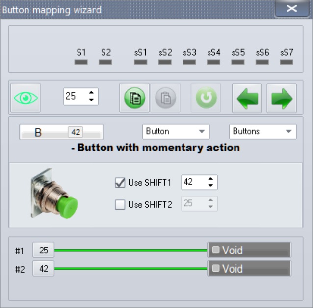 To do this, you need to disable button 25 at the physical level, put a Viod for button 42 at the logical level and change L13 to V25 in the Boolean.